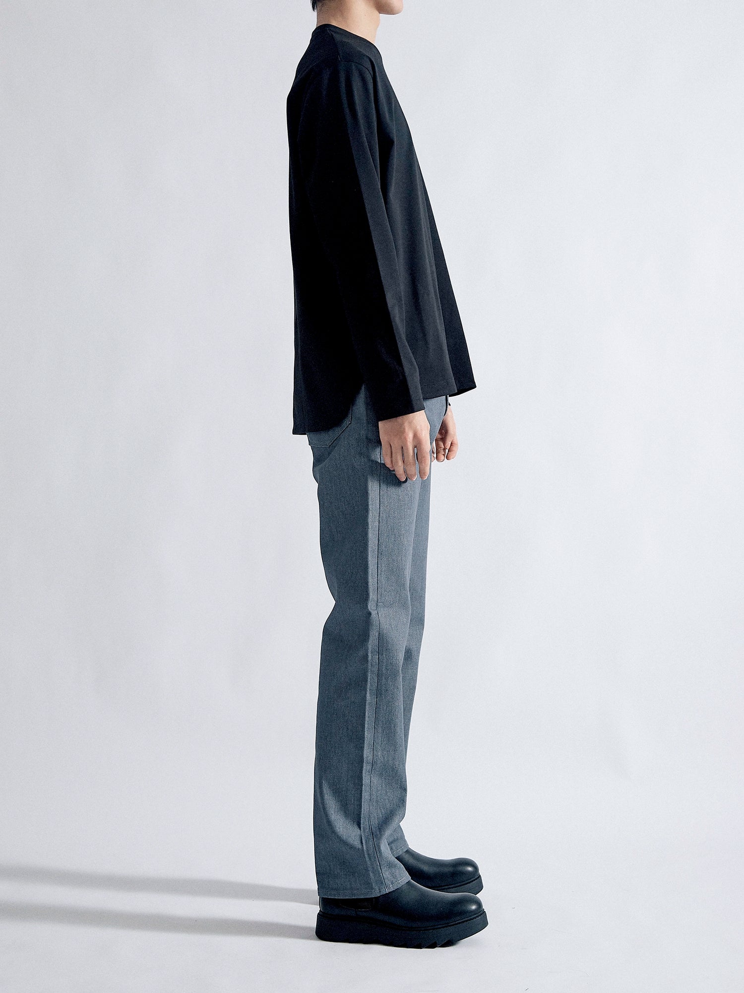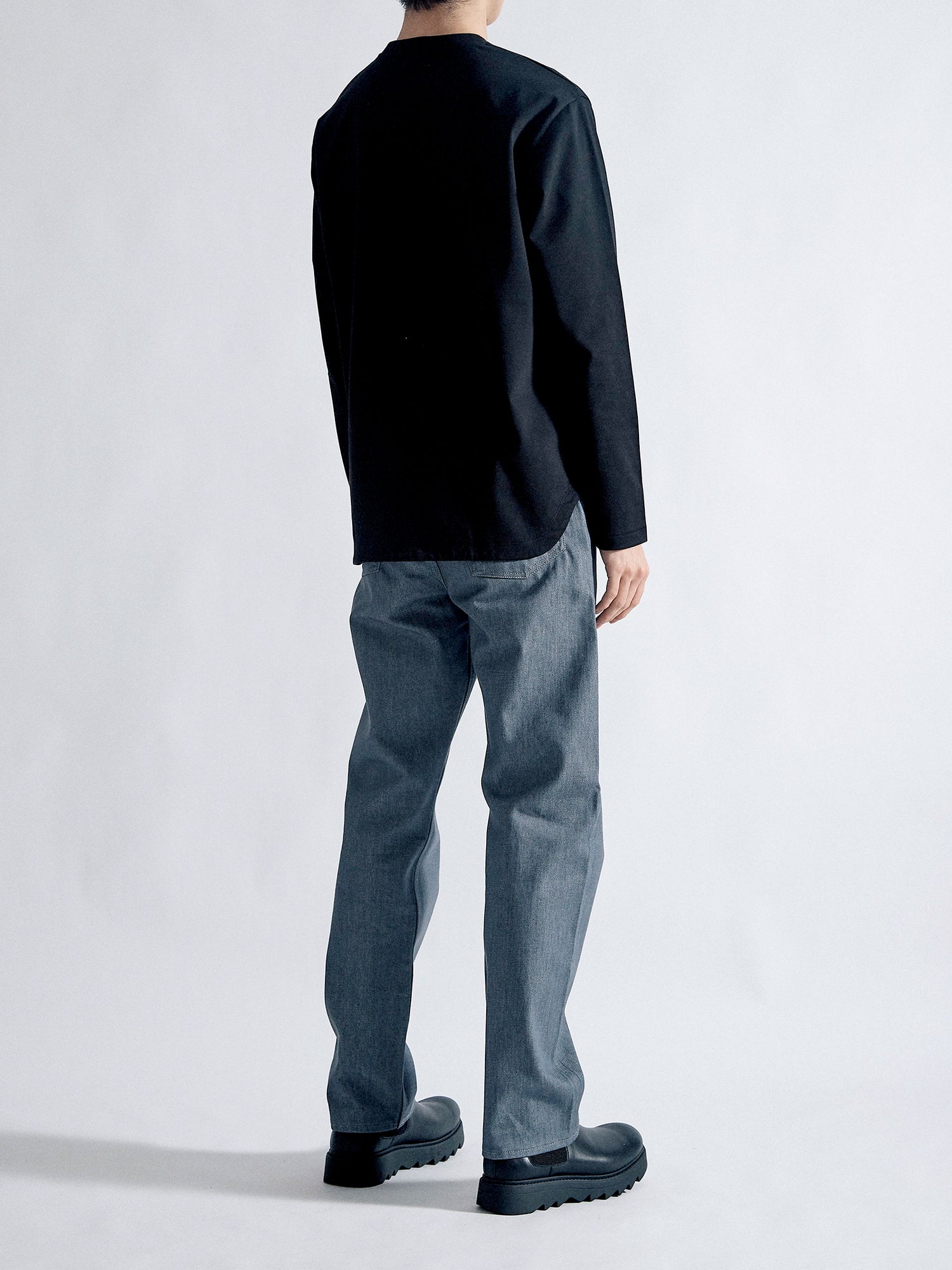 微強撚糸を極限までハイゲージで編みこみ、しっかりとしたコシのある綺麗な表情が特徴で、さらっとした肌触りが心地よい一枚です。