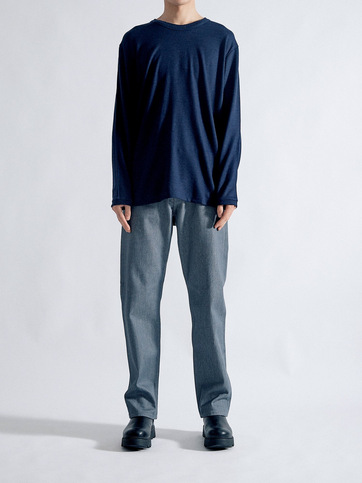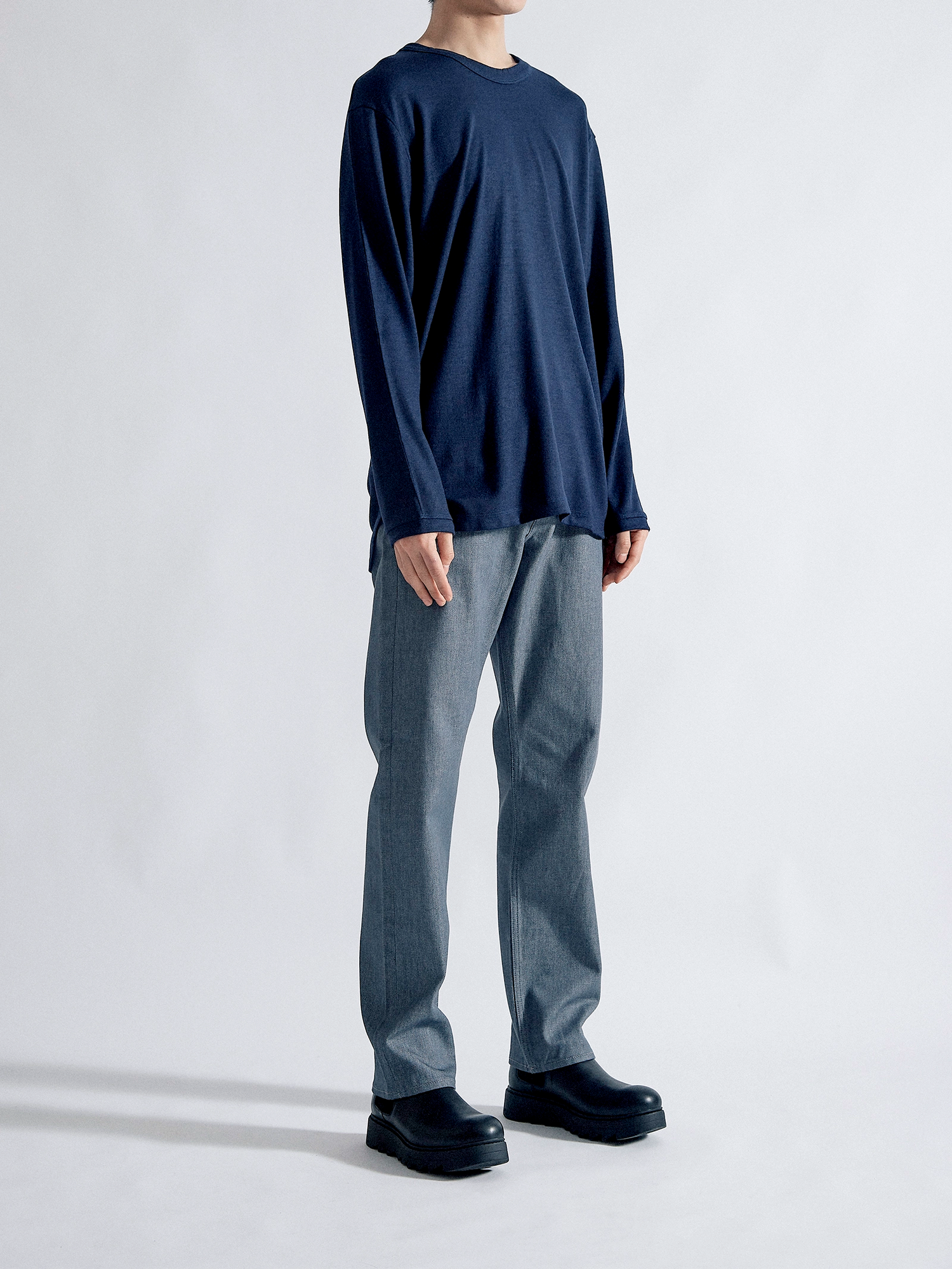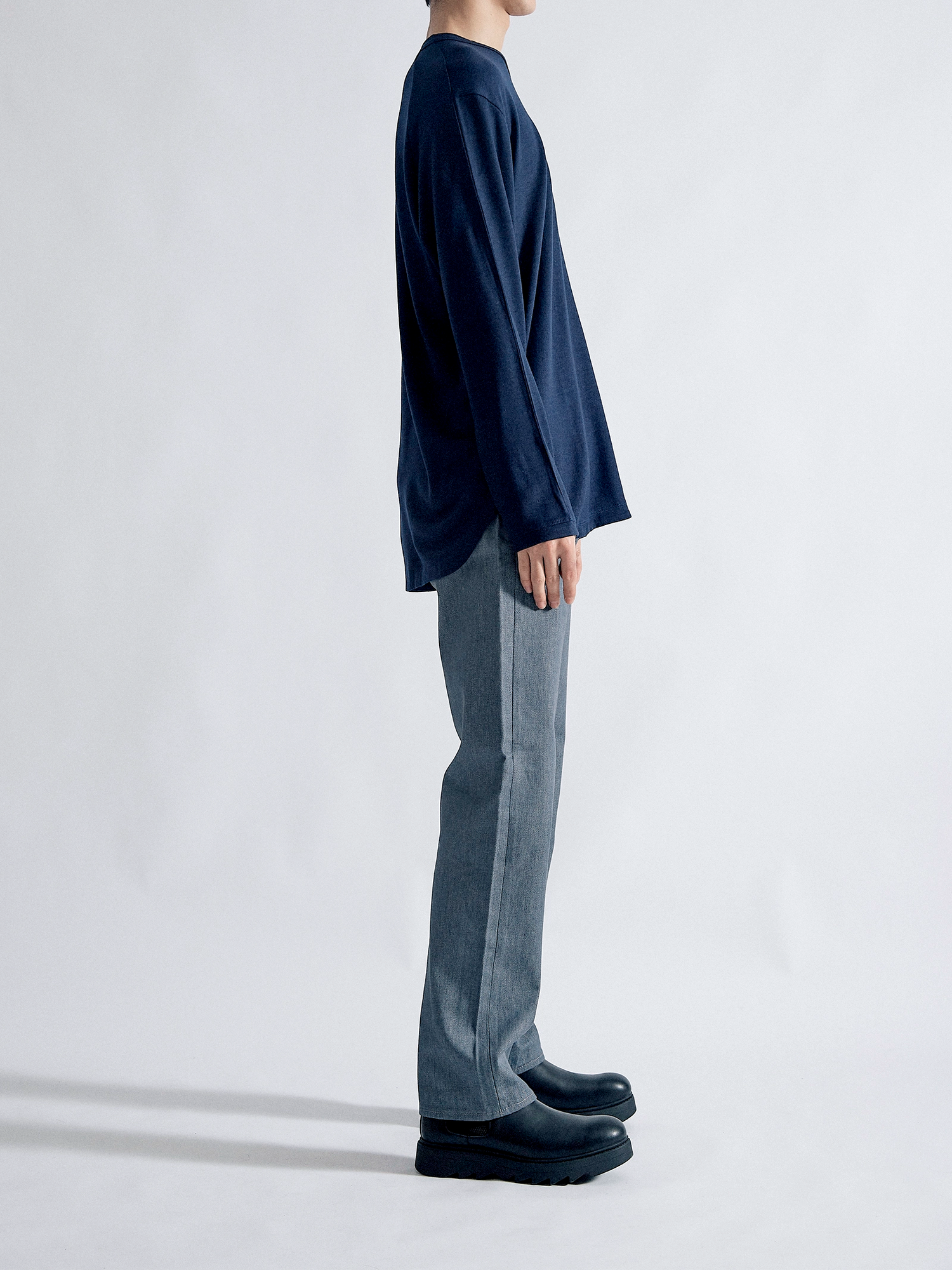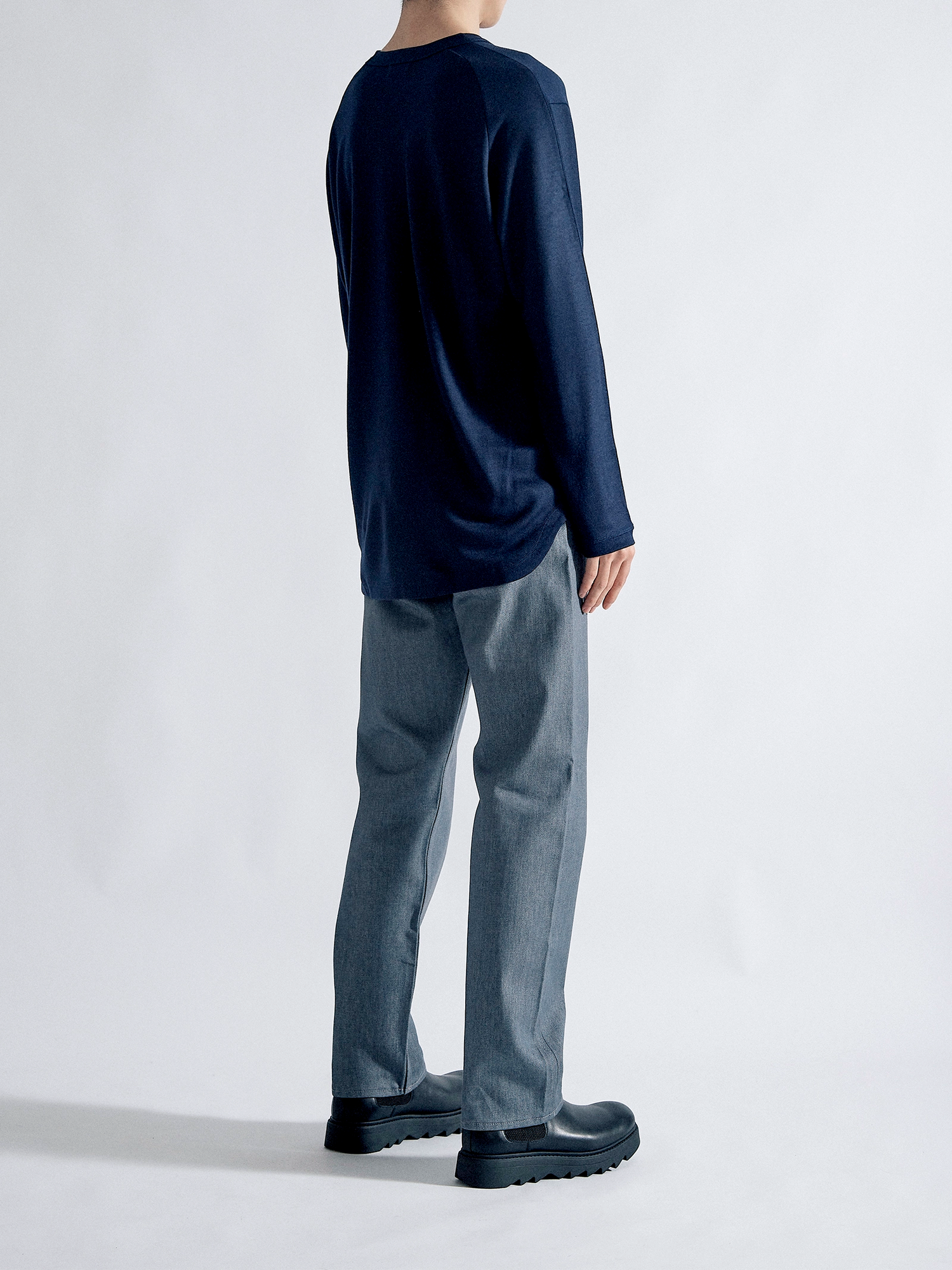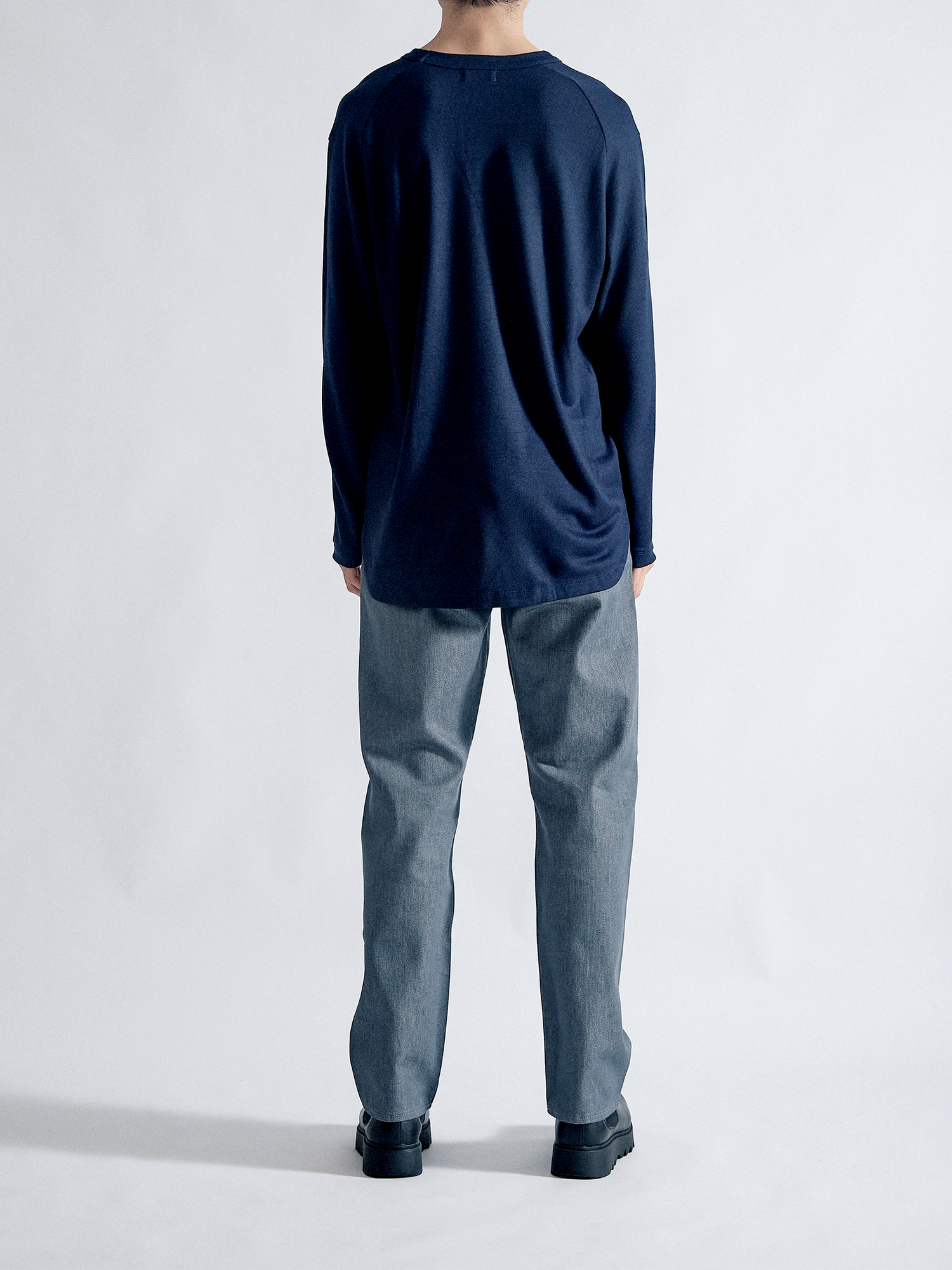 適度な肉感とハリ感のある2/48ウール天竺素材を使用し、軽い着心地ながら暖かい一枚に仕上がりました。