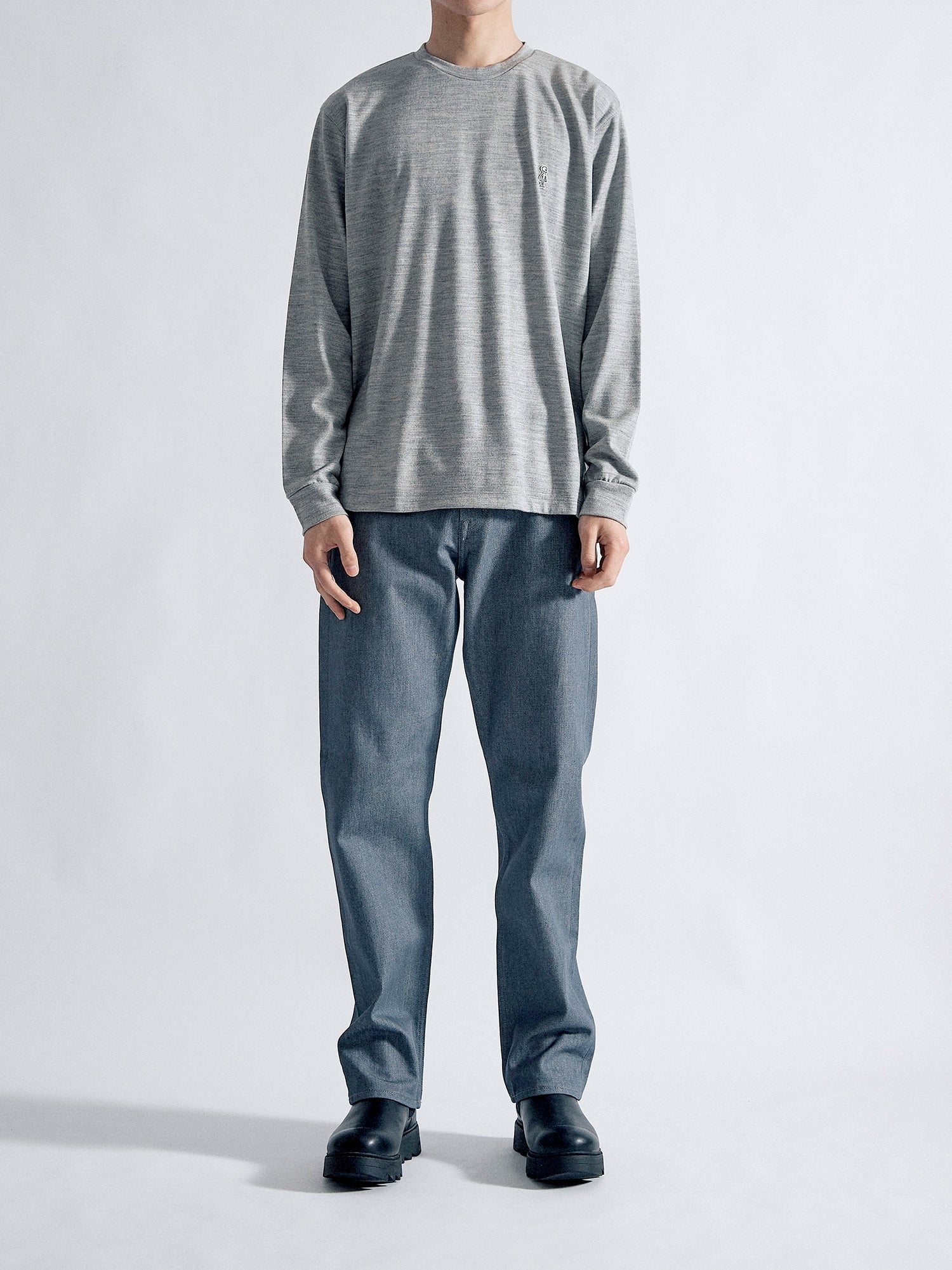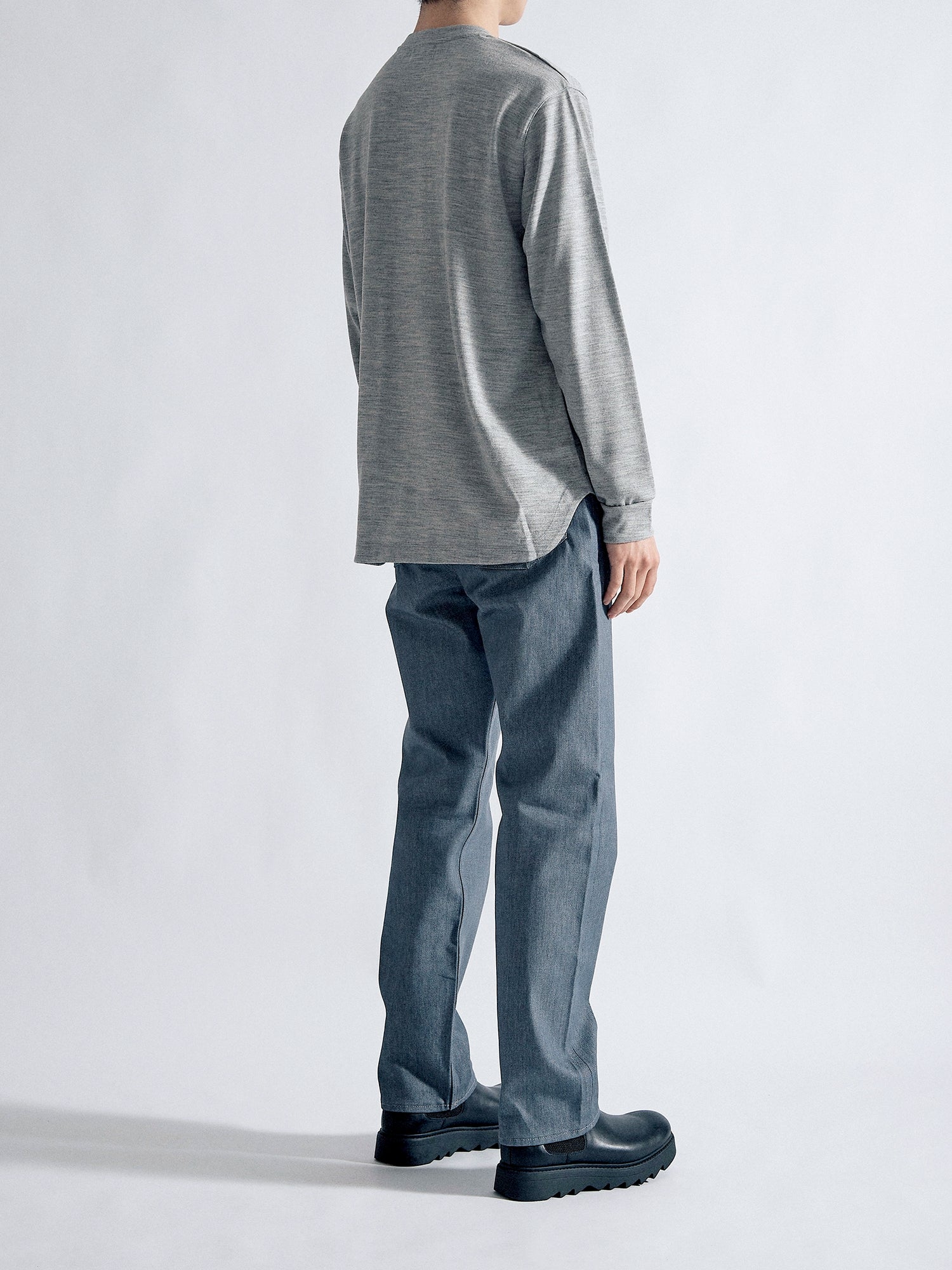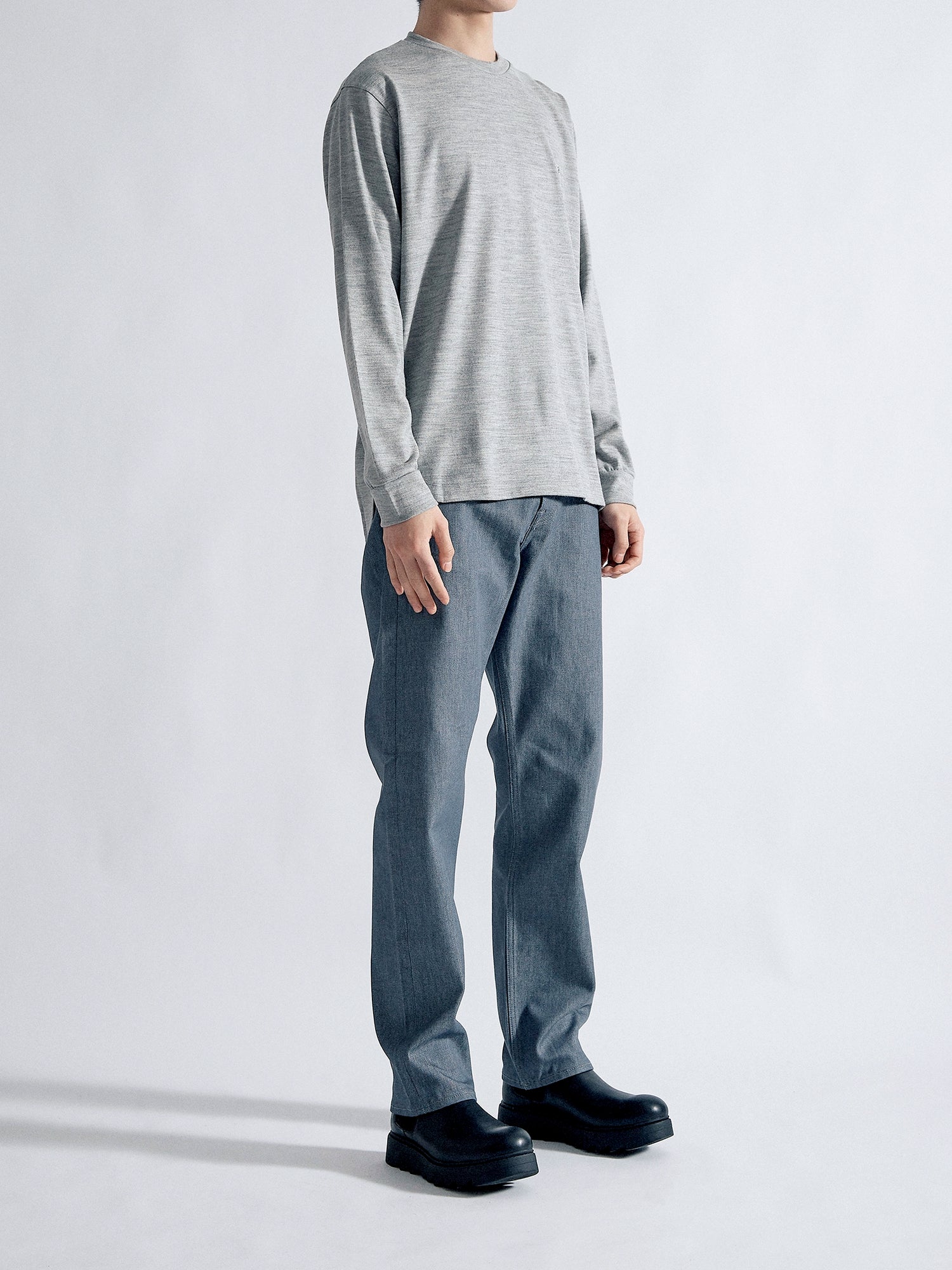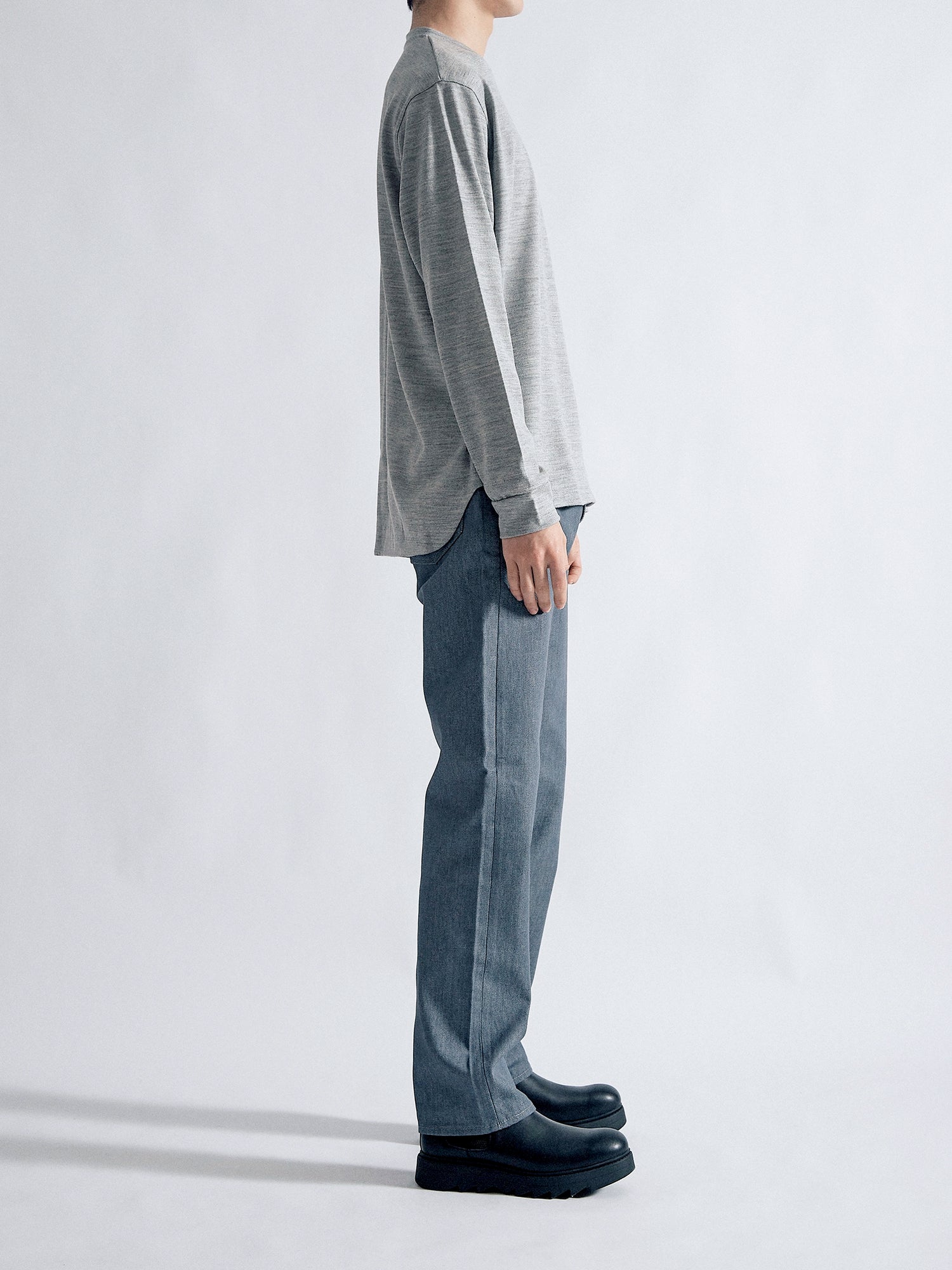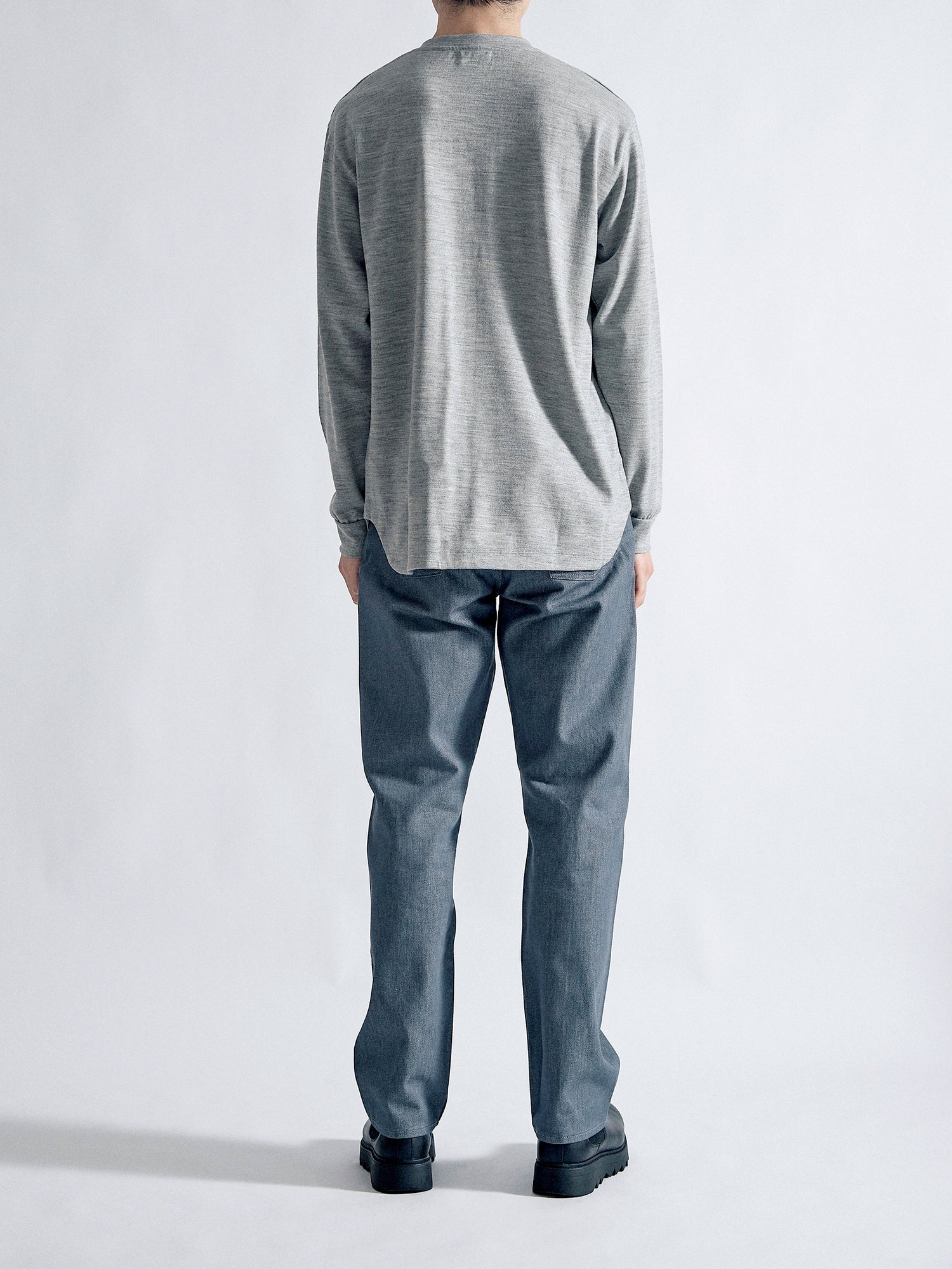 適度な肉感とハリ感のある2/48ウール天竺素材を使用し、軽い着心地ながら暖かい一枚に仕上がりました。